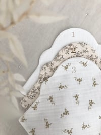 Imprimé 3 : Double gaze de coton oeko tex, imprimé bouquet ocre, fond écru