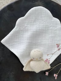Pour la version blanc lait uniquement : Possibilité de personnaliser votre doudou avec l'ajout d'une broderie réalisée à la main. Pour cela choisir l’option correspondante au moment de la commande et indiquer en commentaires le mot ou prénom souhaité, ou toute autre précision