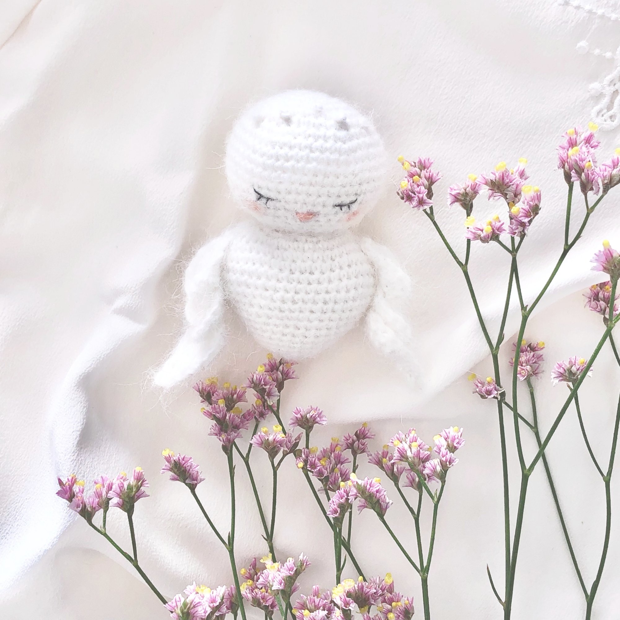 Confectionnez cette attendrissante colombe en vous référant, dans un premier temps, aux explications de votre patron « Hope le Petit Paon » puis, en remplaçant le plumage par ces deux petites ailes aériennes